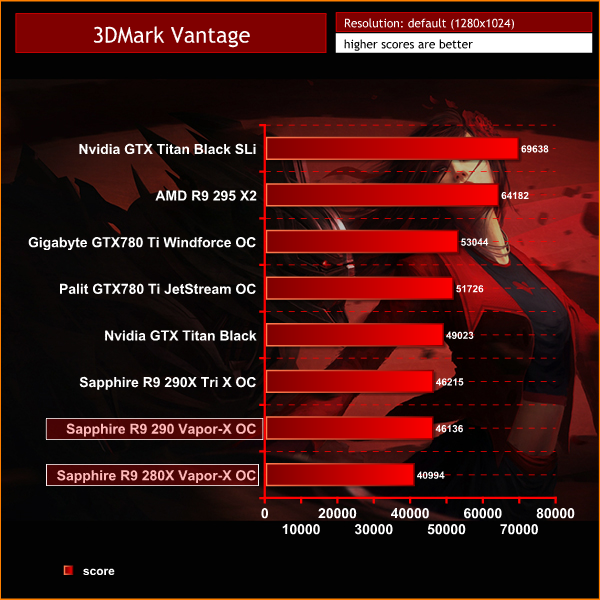 The Sapphire R9 290 Vapor-X OC scores very well in this older Direct X 10 benchmark, almost identical actually to the more expensive Sapphire R9 290X TriX OC.