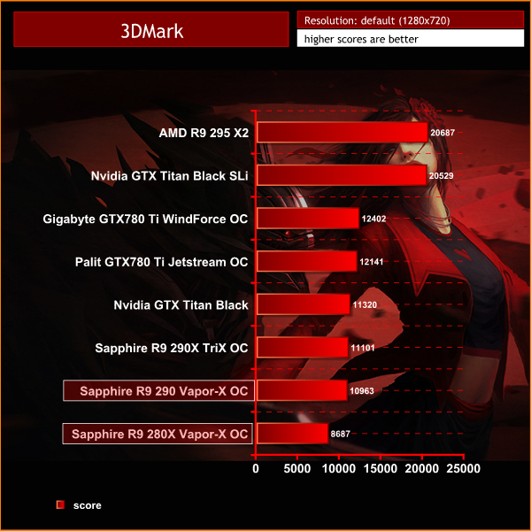 The latest version of 3DMark shows that the Sapphire R9 290 Vapor-X OC is rating almost at the same level as the more expensive R9 290X TriX OC.