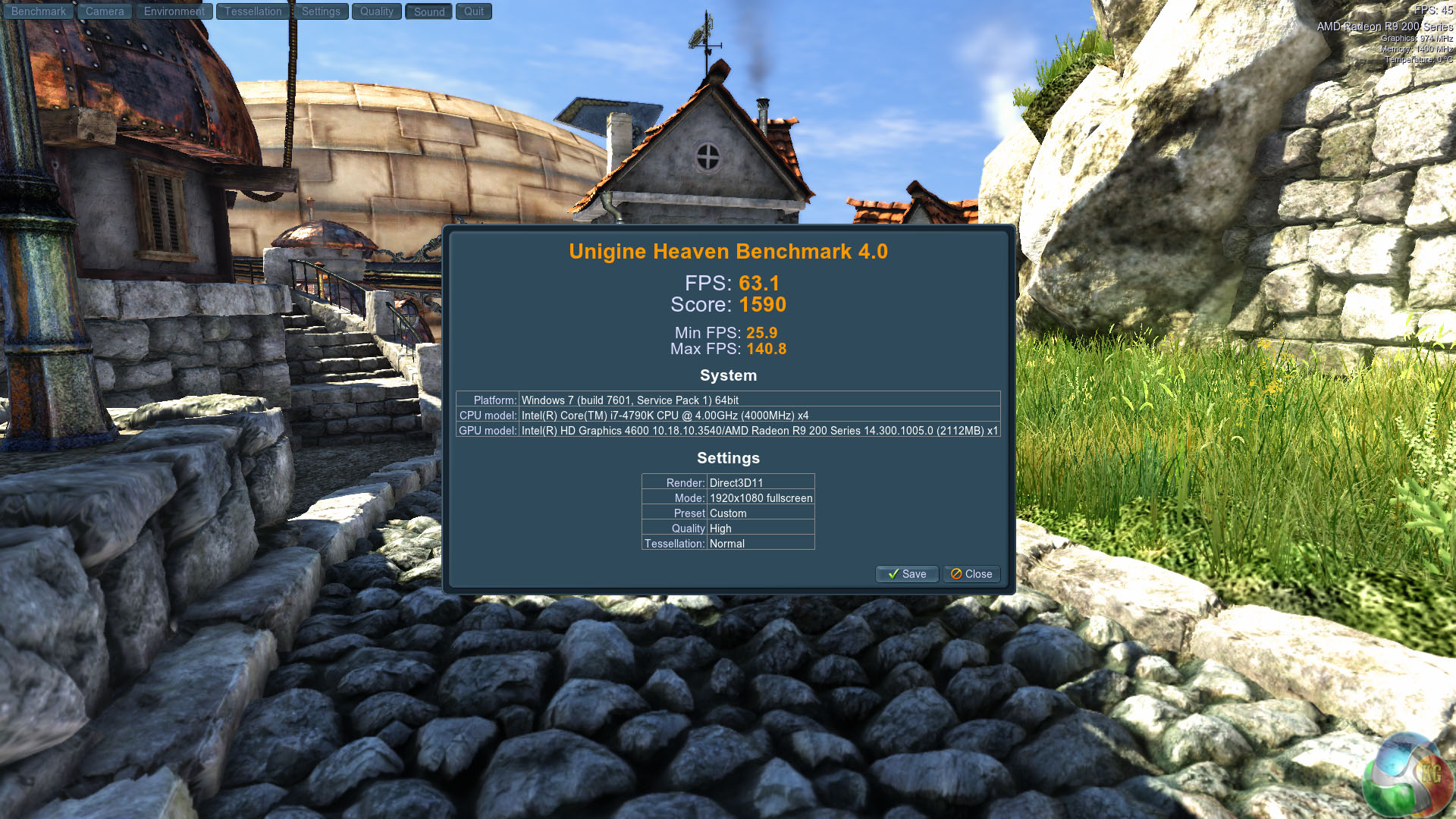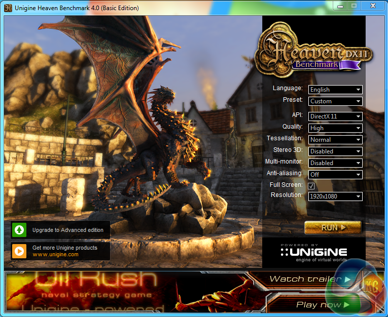 Heaven Benchmark is a DirectX 11 GPU benchmark based on advanced Unigine engine from Unigine Corp. It reveals the enchanting magic of floating islands with a tiny village hidden in the cloudy skies. Interactive mode provides emerging experience of exploring the intricate world of steampunk.