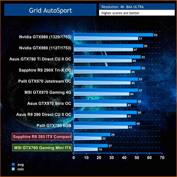 Both Sapphire R9 285 ITX Compact and MSI GTX760 Gaming Mini ITX just don't have the power to handle this engine at 4K, unless we were to lower image quality substantially.