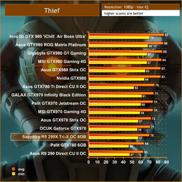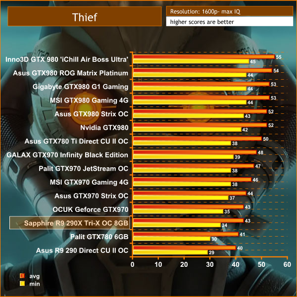 At 1080p and 1600p, the Sapphire R9 290X Tri-X OC 8GB struggles to compete against the GTX980 and the results are more in line with the GTX970 series of cards. Still, both resolutions are perfectly playable which is the key point to make.