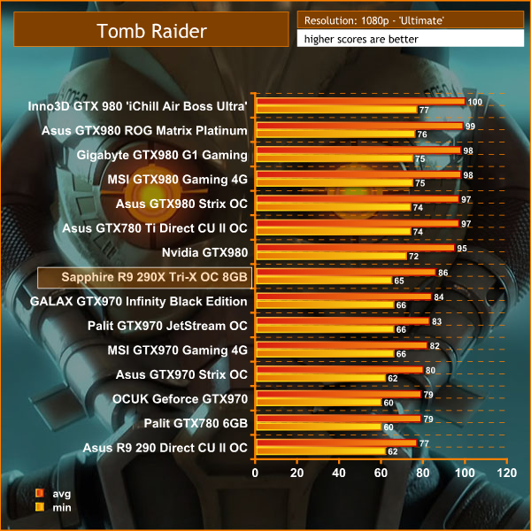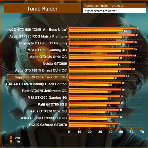 The game is perfectly playable at both 1080p and 1600p resolutions, holding a place in the middle of the table just ahead of the GTX970 cards.