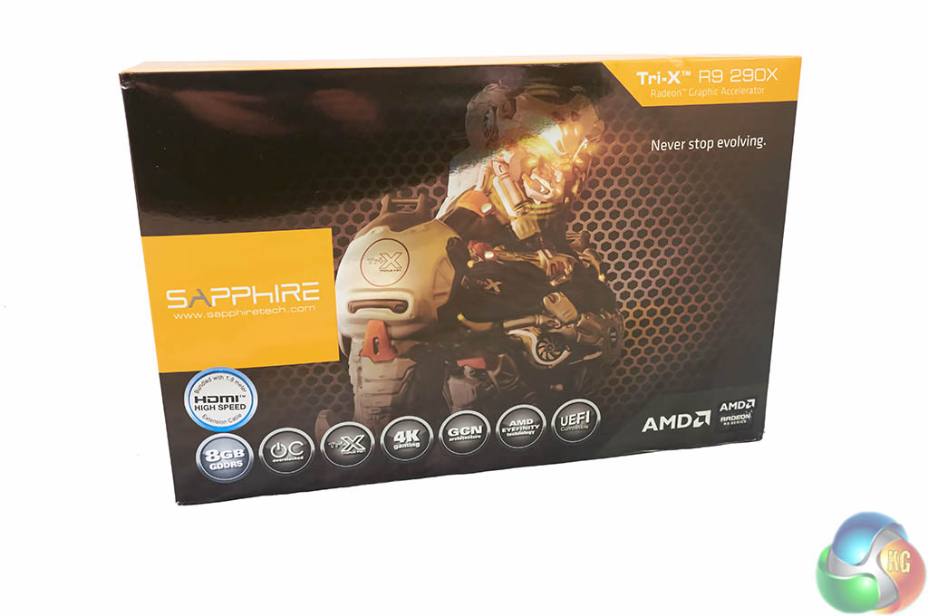 “You looking at me?”. The robot on front of the Sapphire R9 290X TriX OC box is nicely designed, much improved over Sapphire's previous 3D renders of (rather well endowed) women. Less sexiest for sure.
