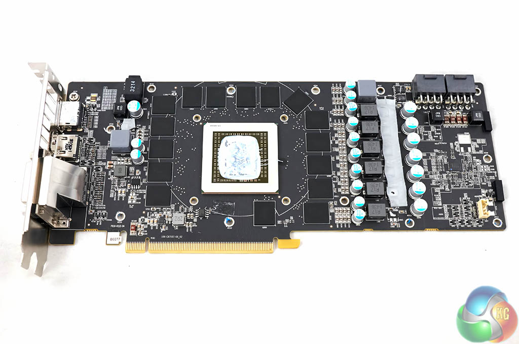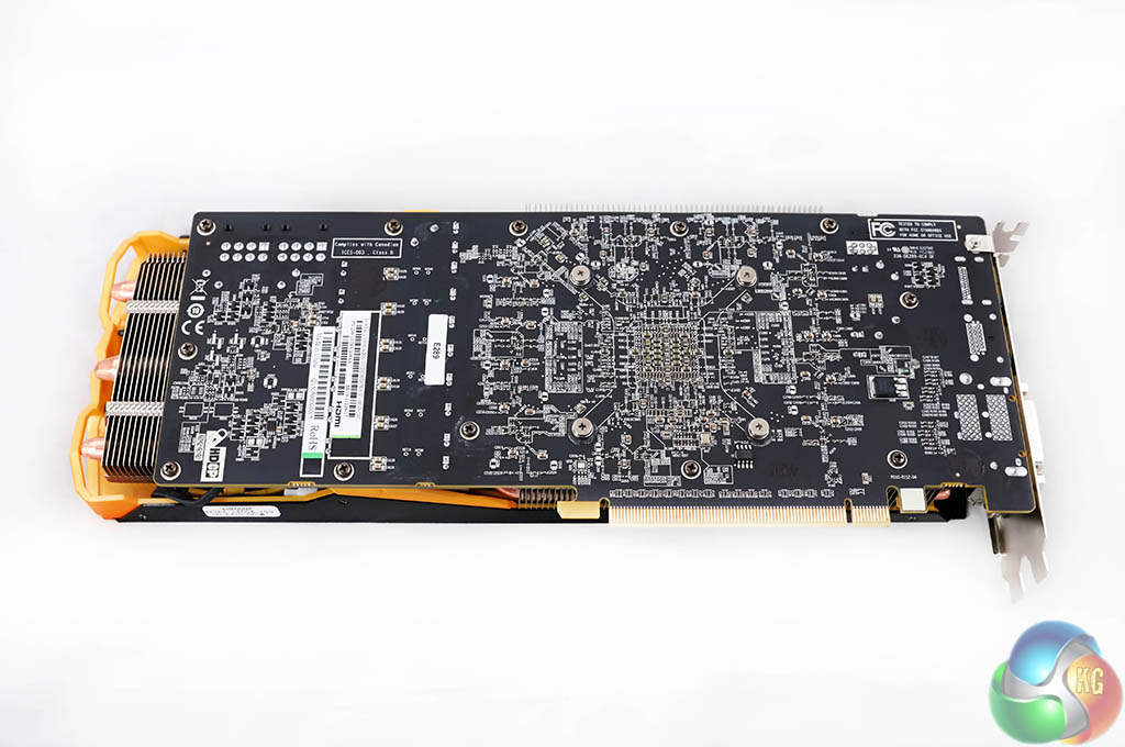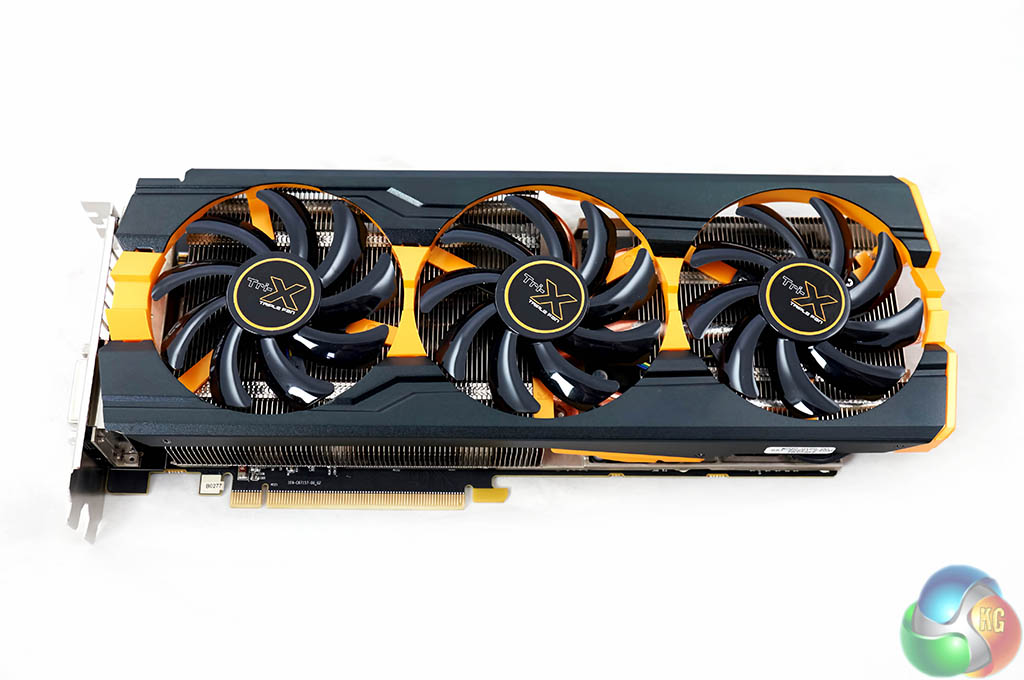 The (by now) familiar yellow and black cooling system which incorporates 3 big fans. The card is built around an attractive black PCB, but I was a little disappointed that Sapphire didn't fit a backplate on this model. It helps improve appearance, cooling and offer protection for the sensitive transistors and circuitry on the PCB.