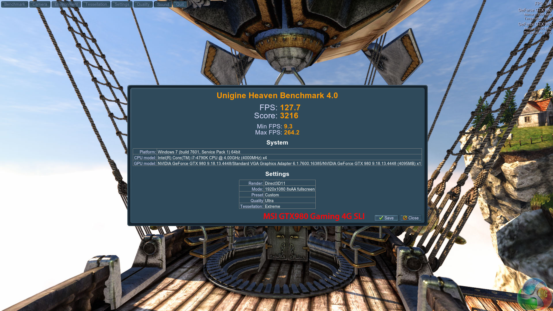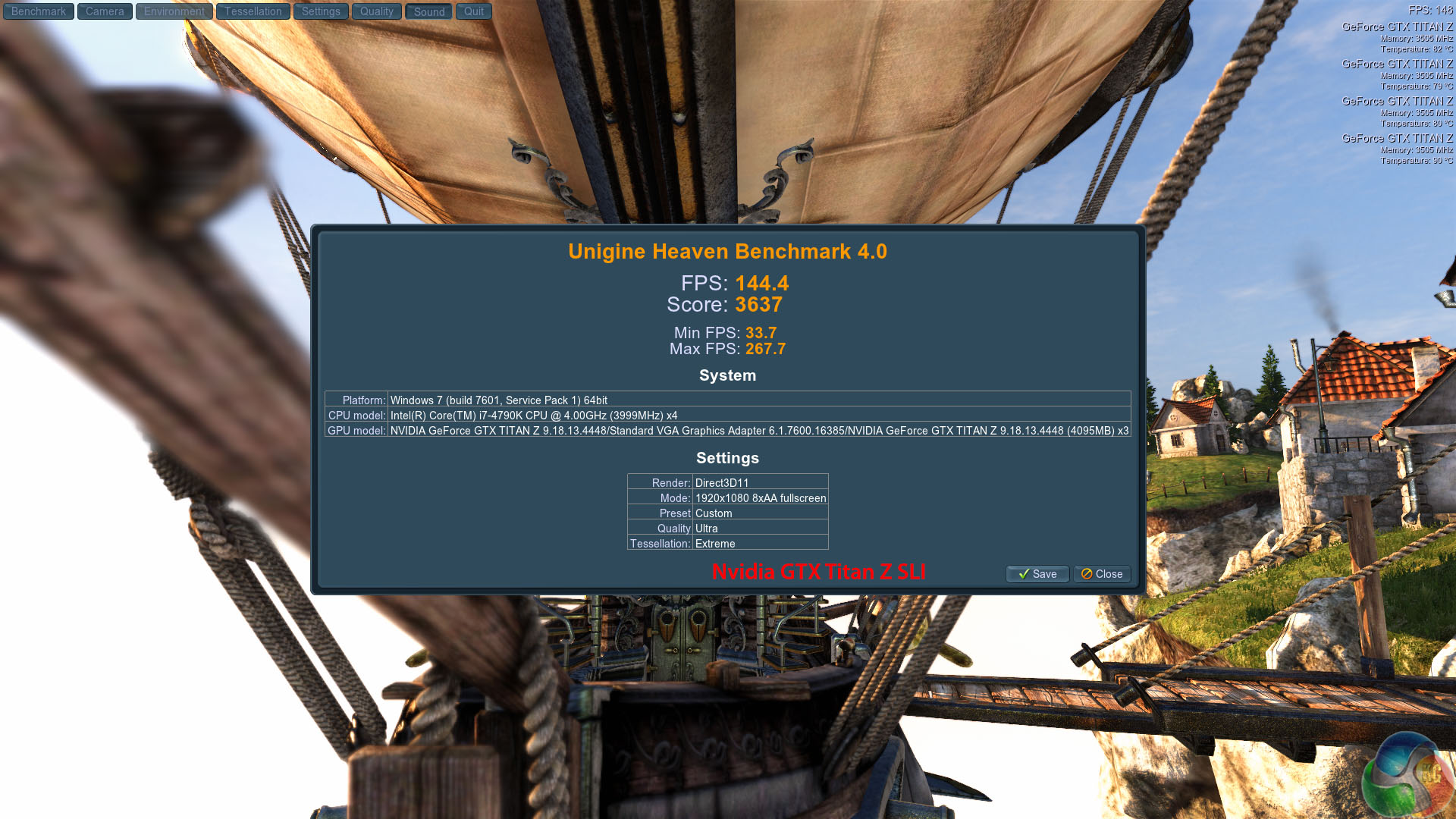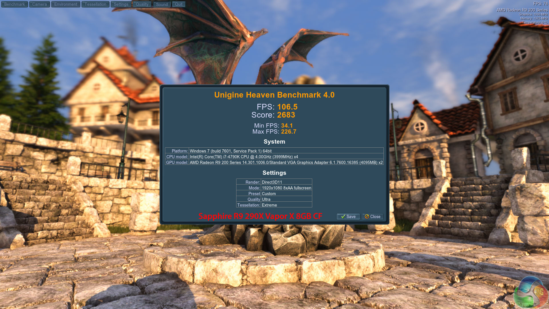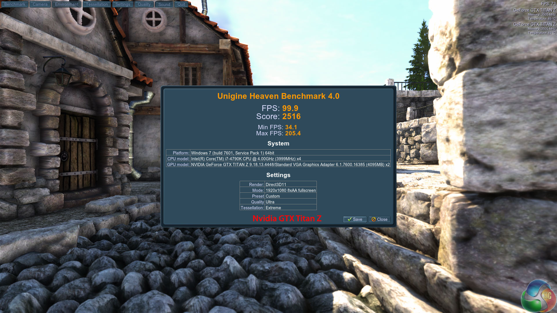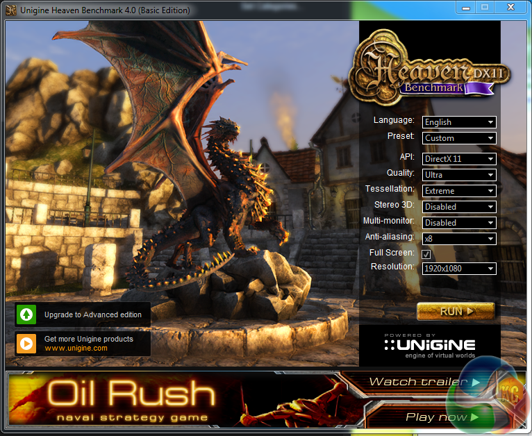We run the test at 1080p and select EXTREME Tessellation, with 8 times Anti Aliasing. Quality is set to ULTRA.