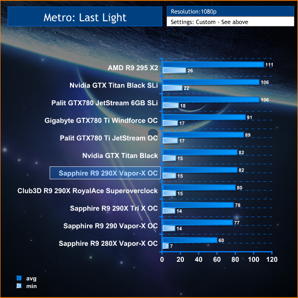 The Sapphire R9 290X Vapor-X OC averages 82 frames per second at these settings.