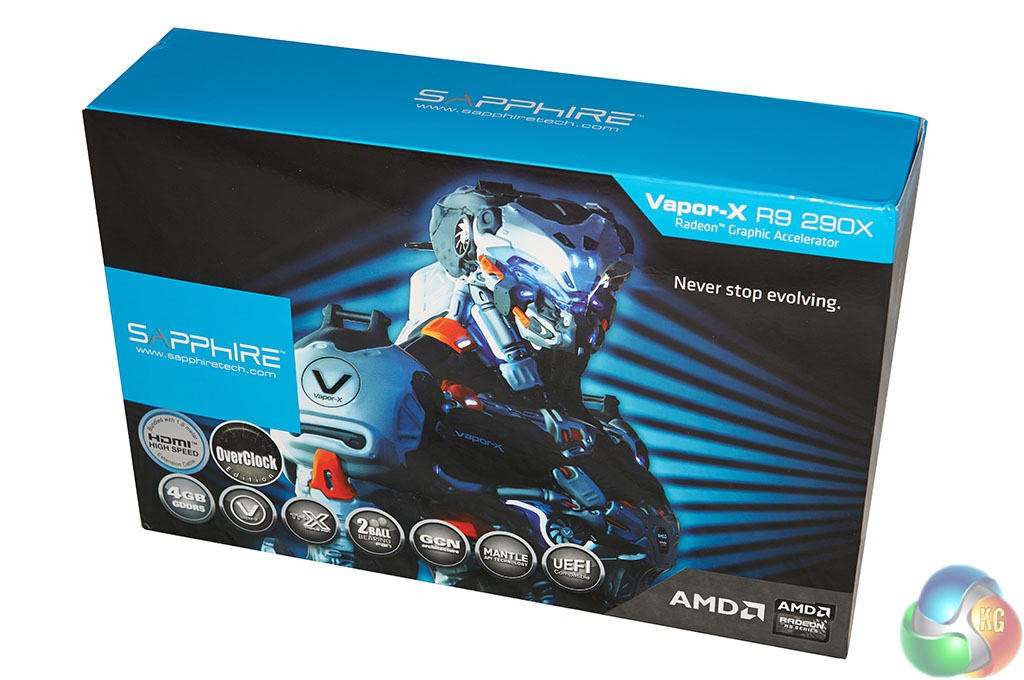 The Sapphire R9 290X Vapor-X OC is kitted out with a formidable cooling system – comprising three fans running the full length of the PCB. The three 90mm fans use Aerofoil section blades to enhance air flow and reduce noise. They use dust repelling ball bearings. The rear of the card is fitted with a backplate to enhance cooling performance.
