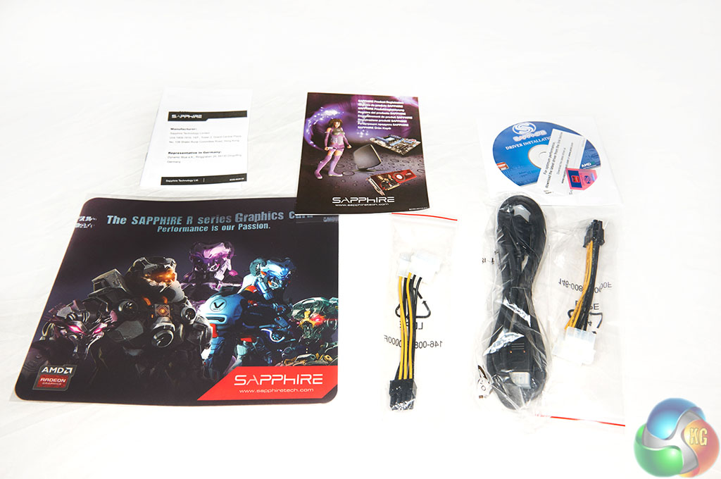 Inside are a couple of power converter cables, alongside an HDMI cable and driver disc. This card qualifies for the ‘Radeon Gold reward‘ entitling the owner to 3 free games.
