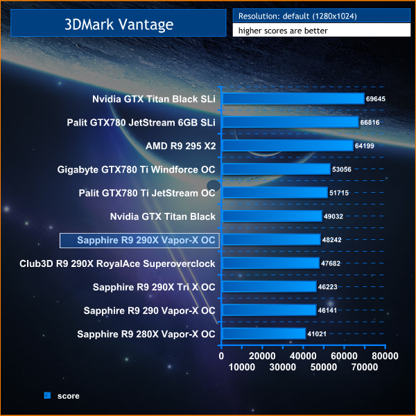 The final score of 48,242 points places the Sapphire R9 290X Vapor-X OC as the fastest single GPU AMD card we have tested, to date.