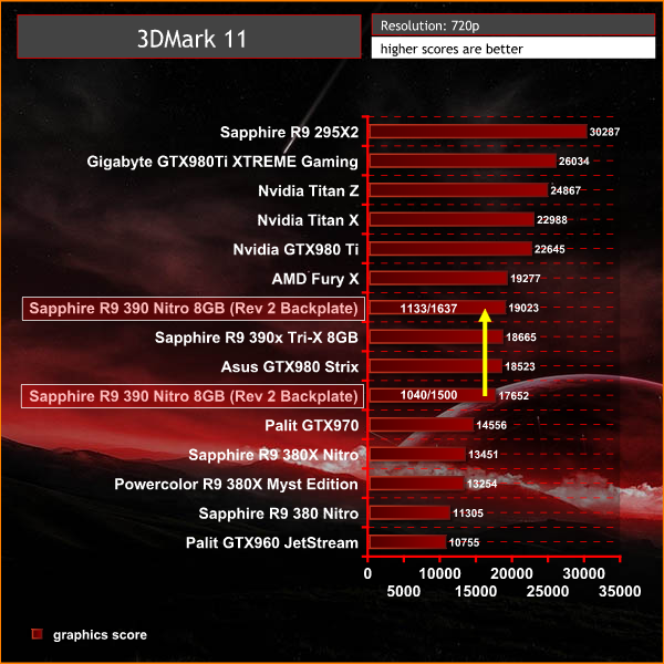The Sapphire R9 390 Nitro 8GB performs well at the out of the box speeds, and when we manually overclock – it surpasses the results from the Sapphire R9 390X Tri-X.