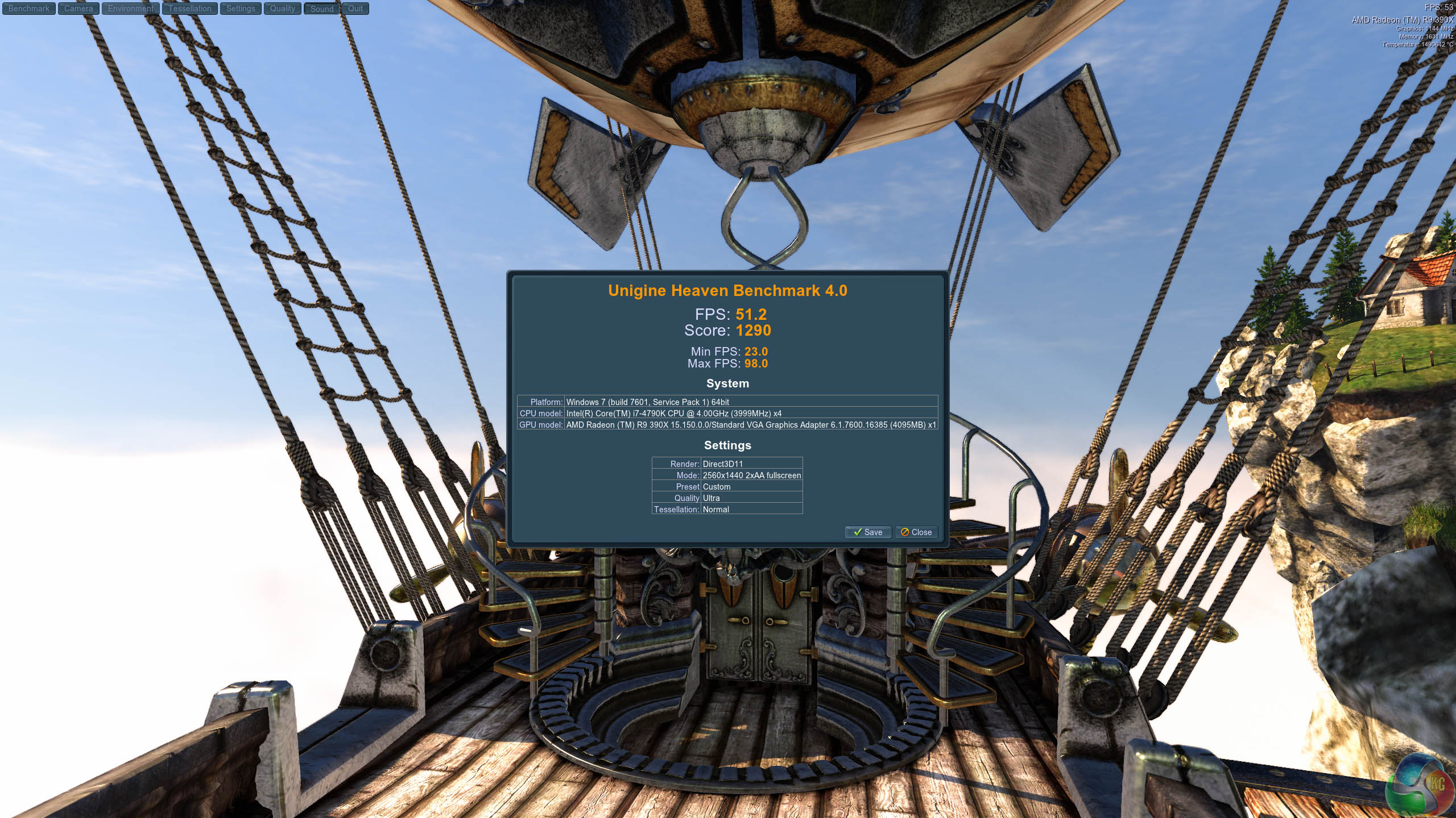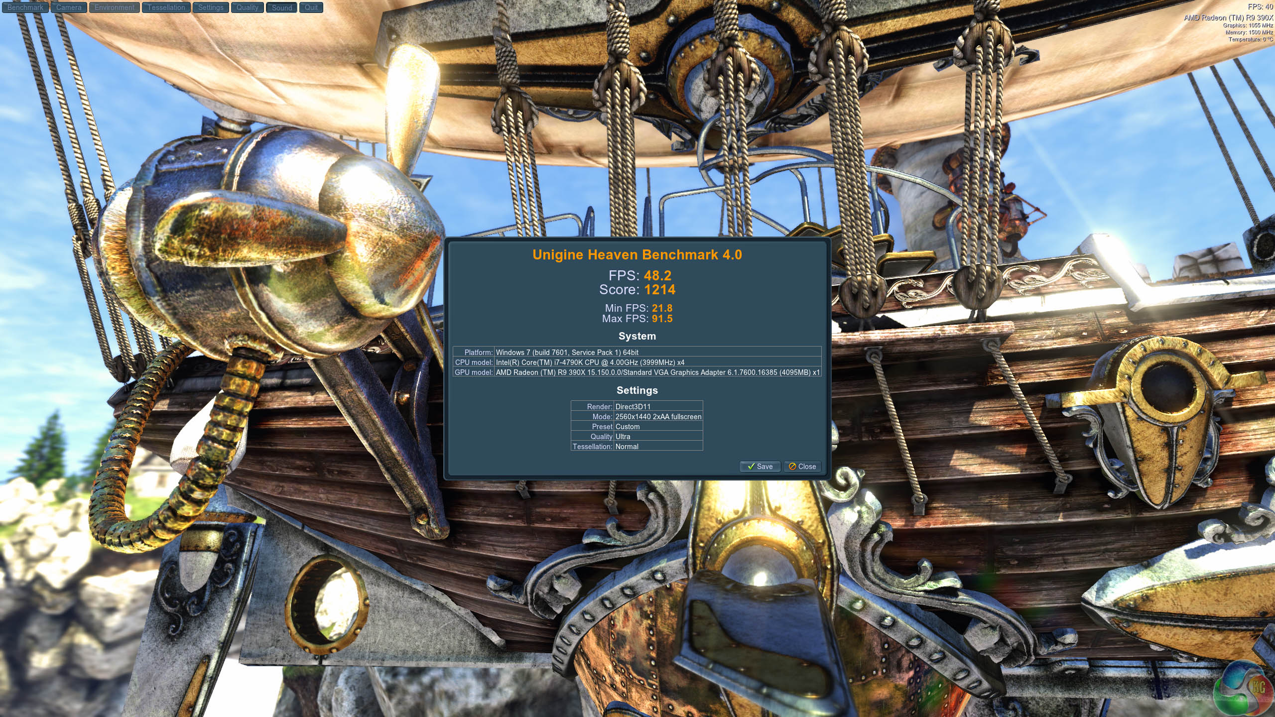 We test at 2560×1440 with quality setting at ULTRA, Tessellation at NORMAL, and Anti-Aliasing at x2.