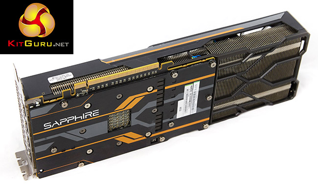 Sapphire have fitted the card with a backplate and an extension to the cooler assembly to increase air circulation. A solid copper transfer plate is fitted alongside a multi heatpipe array featuring a single 10mm, two 8mm and four 6 mm heatpipes.