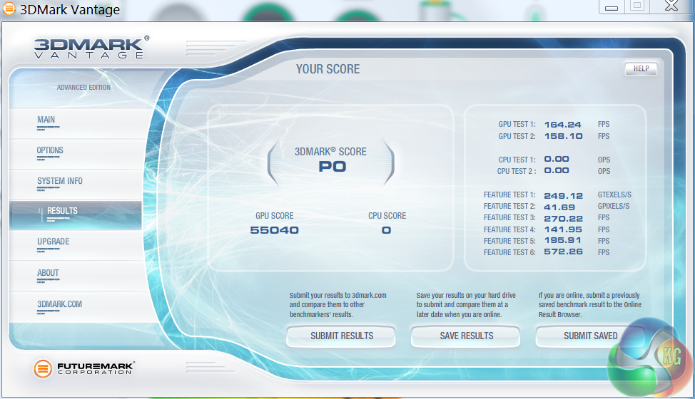 Futuremark released 3DMark Vantage, on April 28, 2008. It is a benchmark based upon DirectX 10, and therefore will only run under Windows Vista (Service Pack 1 is stated as a requirement) and Windows 7. This is the first edition where the feature-restricted, free of charge version could not be used any number of times. 1280×1024 resolution was used with performance settings.