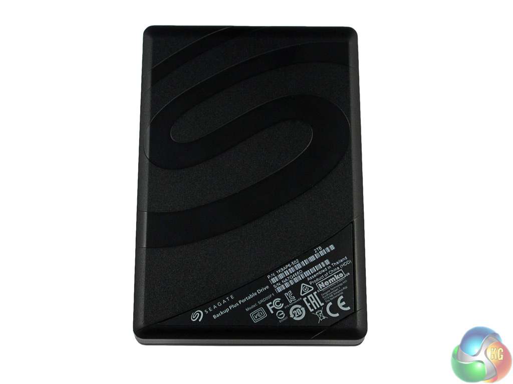 The bottom of the drive features a large Seagate logo and a few barcodes, but nothing related to the usage of the drive itself.