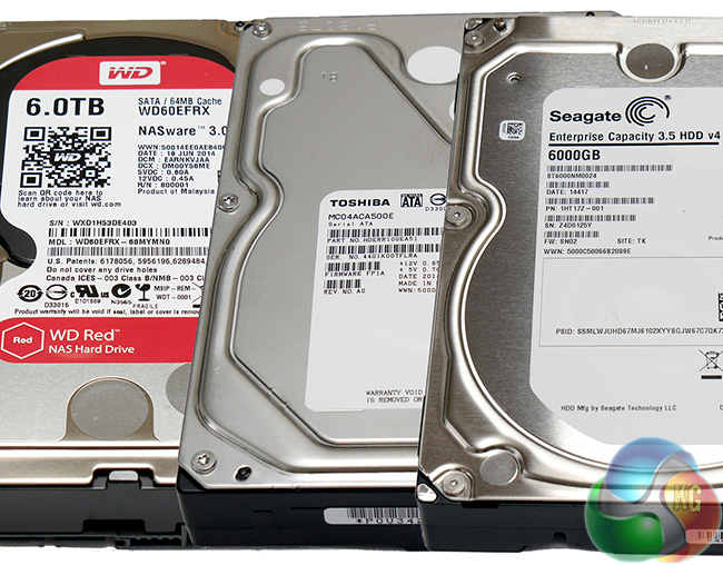 We have three drives lined up here; the 6TB Seagate Enterprise v4 costs £430, the 5TB Toshiba Nearline Enterprise costs £270 and the 6TB Western Digital Red £210 – so that is a total of 17TB of storage for £900.