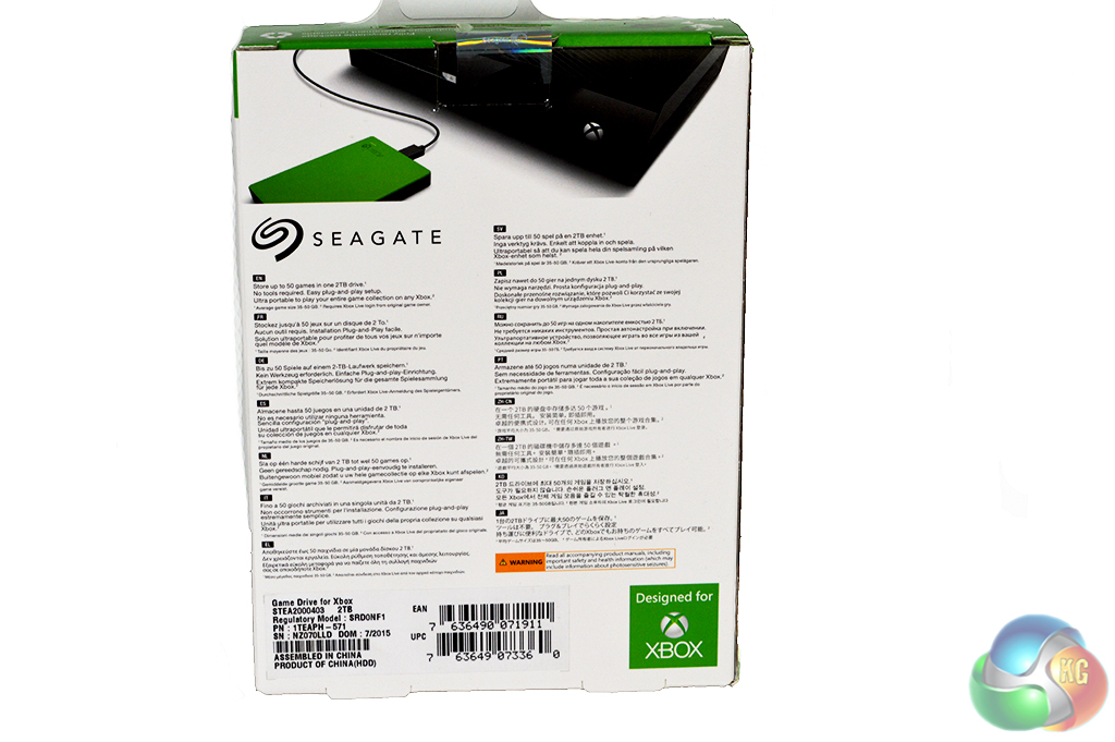 The Seagate Game Drive packaging will be fairly familiar to anyone who has picked up an external hard drive before. There is some Xbox branding, which is to be expected and while most features are listed, the actual speed of the drive is not noted on the box.