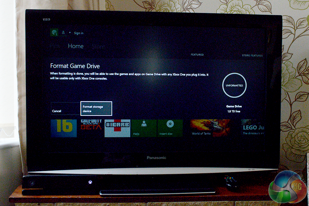 Upon plugging the Game Drive in, you will be greeted with this screen, which will ask you to format the drive and get it all set up for the Xbox One console.