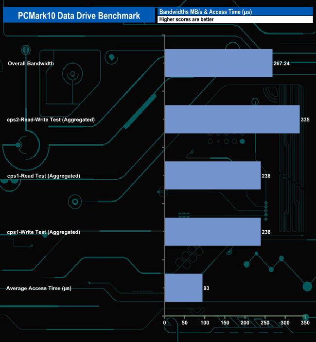The WD Blue SN570 inside the Oracle Air handled the PCMark 10 PCMark 10 Data Drive Benchmark test pretty well with an overall bandwidth result of 267.24MB/s with an average score for the three file transfer tests of 270.3MB/s.