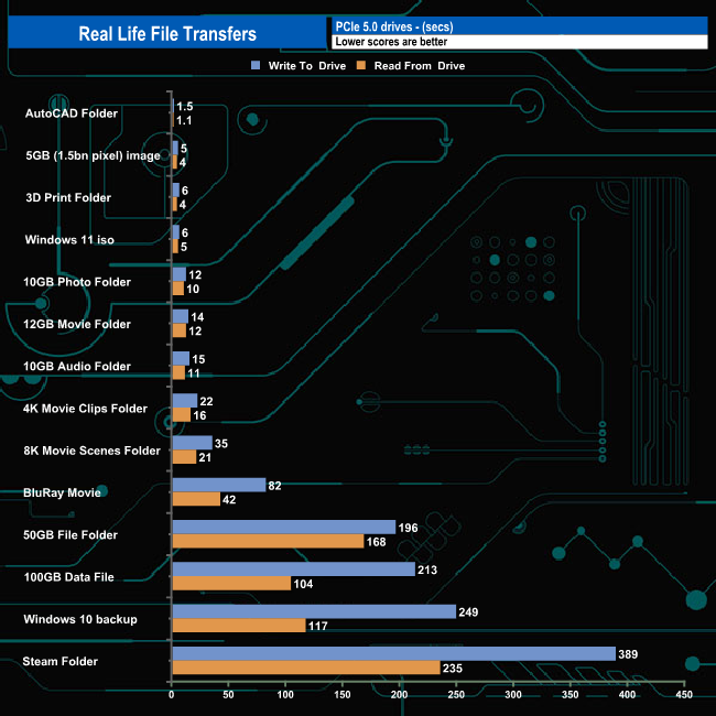To test the real-life performance of a drive we use a mix of folder/file types and by using the FastCopy utility (which gives a time as well as MB/s result) we record the performance of drive reading from & writing to a 2TB Seagate FireCuda 510.
