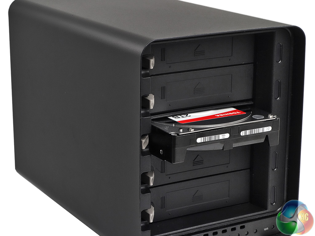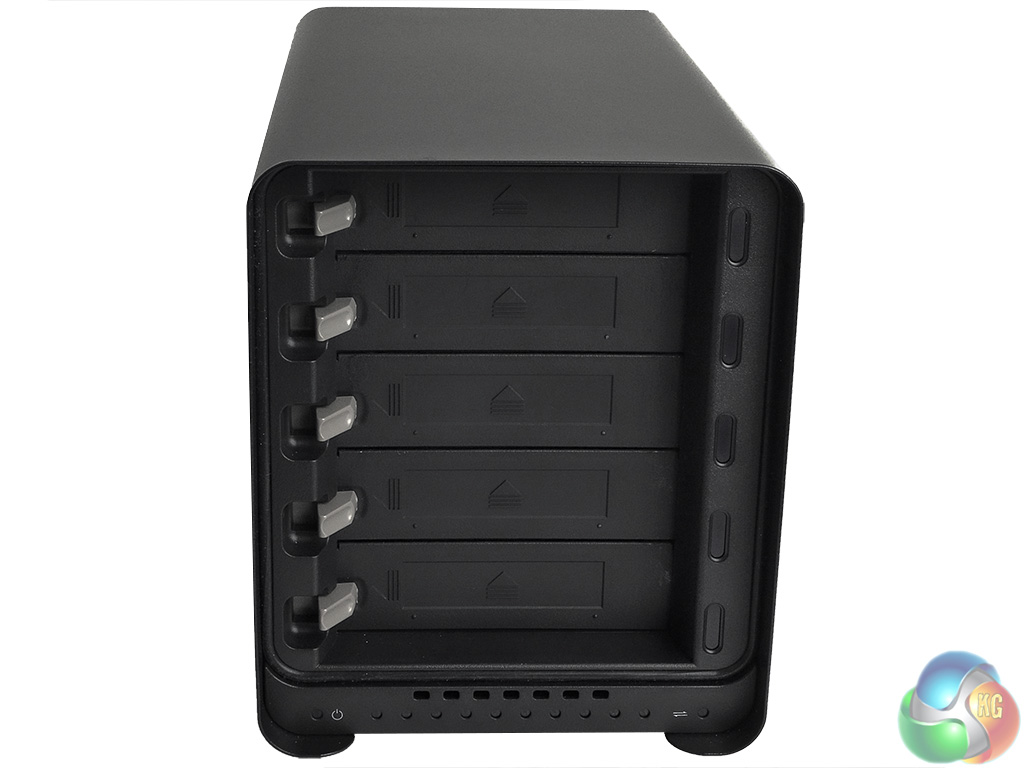 The bays support both 3.5in and 2.5in but in the case of 2.5in drives you need to use bay converters. Incidentally, Drobo recommends IcyBox products on their website but we used Startech 25SAT35HDD converters to test SSDs with the unit and they worked perfectly well.