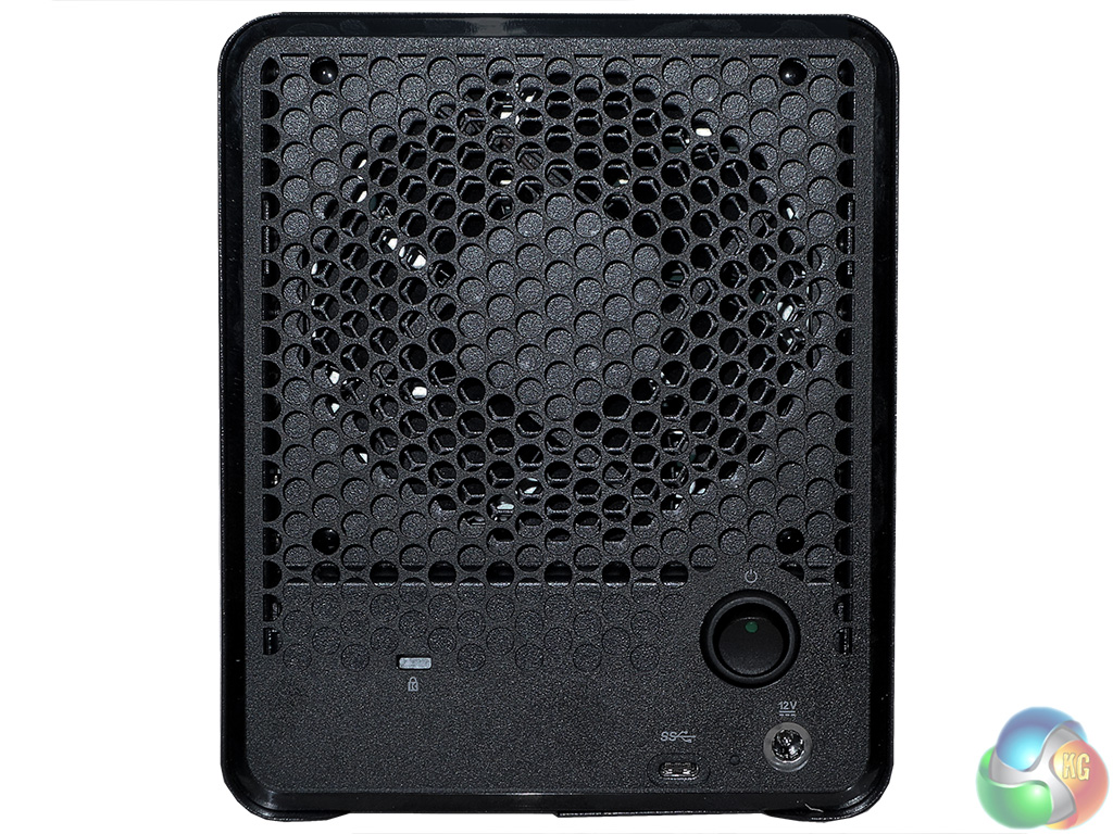 The rear of the unit is dominated by the grill for the cooling fan with the only other things on the rear panel being the ports for the power adapter, the USB-C and the power button. That rear-mounted power button will soon have you cursing if you have the Drobo on a shelf or in a cupboard.