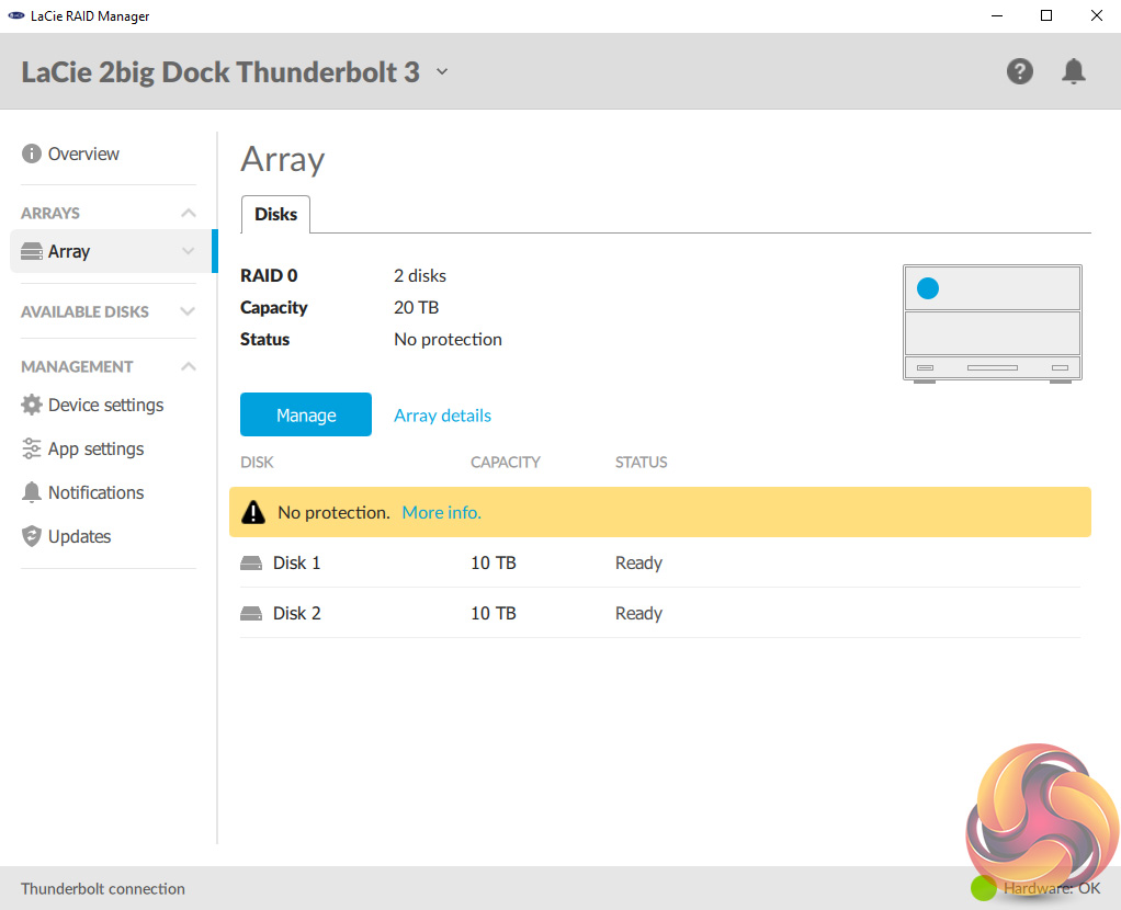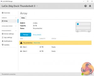 Like the LaCie 12big we looked at recently, the 2big Dock uses LaCie's excellent RAID Manager software but obviously a cut down version as there are only two disks to play with.
