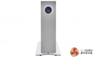The build quality of the d2 Thunderbolt 3 is very good. The enclosure has been constructed from one single sheet of aluminium, which acts like a heat sink, helping the pull away heat from the vertically mounted hard drive. The base is covered in small rubber feet to lessen any effect of drive vibration.