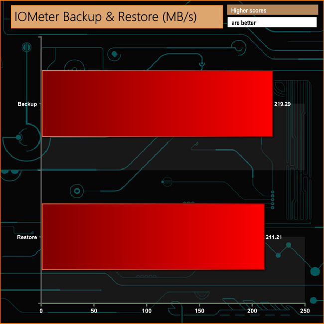 We set IOmeter up (as shown above) to test both backup and restore performance on a 100GB file.