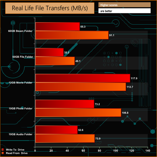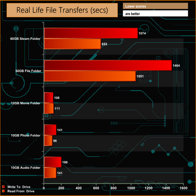 When it comes to transferring real life data, the Rugged sailed through our tests without any problems although the performance did drop off when writing the small bity files of the 50GB file folder.