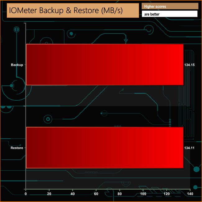 We set IOmeter up (as shown above) to test both backup and restore performance on a 100GB partition. Performance wise there is nothing to separate the drives reading and writing performance for this test.