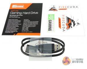 Bundled with the drive is a shortish USB 3.0 Type-A to Micro-B cable, some FireCuda stickers and a multilingual quick start guide.