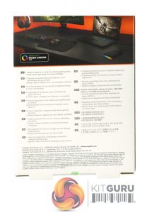 The back of the box has an illustration informing that the RGB system works with Razer Chroma with the rest of the box covered in multilingual marketing text.