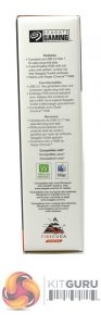 One box end has a multilingual description of what the drive can connect to, while the other end has a small list of the drive's features, again multilingual.