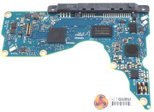 As well as Toshiba's Stable Platter Technology preventing the effects of vibration in large multi-bay systems, the drive also has built-in RV (Rotational Vibration) sensors (the small angled metal objects on the top right and bottom left of the PCB). These sensors compensate for any rotational vibration detected, eliminating the possibility of ‘knock-on' vibration in multi-bay server systems.