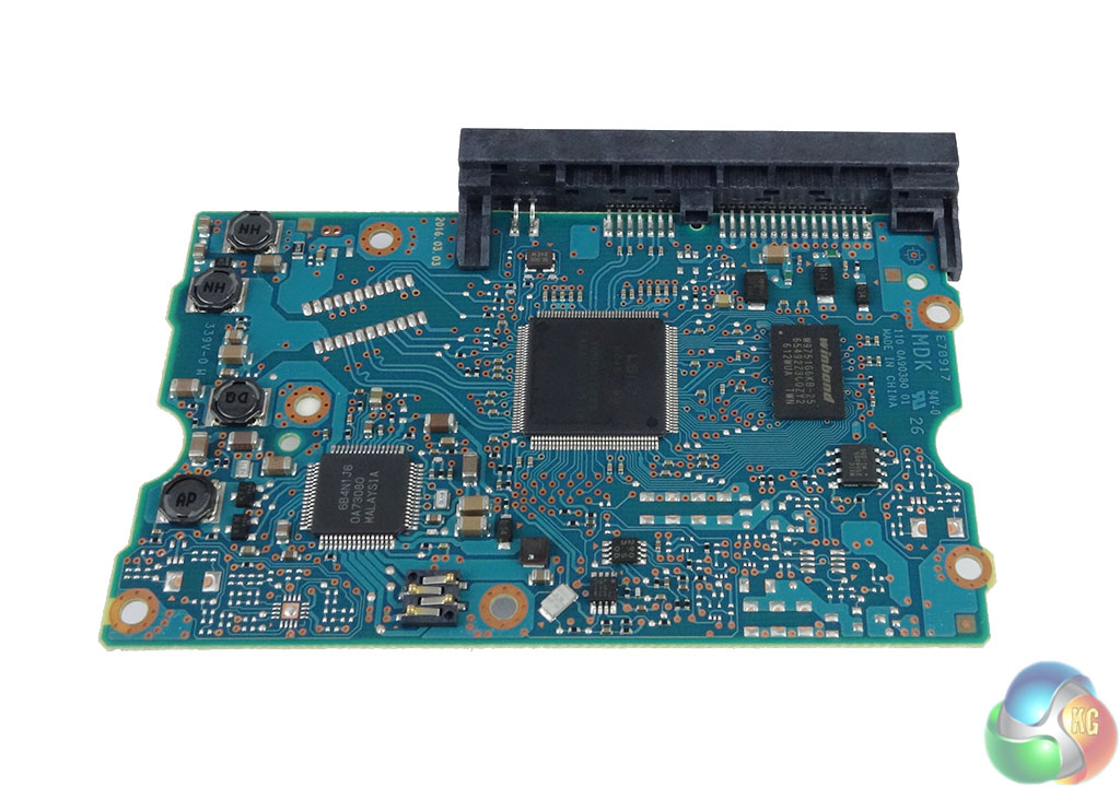 A quick glance at the rear of the PCB shows an LSI 6045 storage controller, a Winbond DDR2 DRAM chip and a spindle controller coded 6B4N1J6.