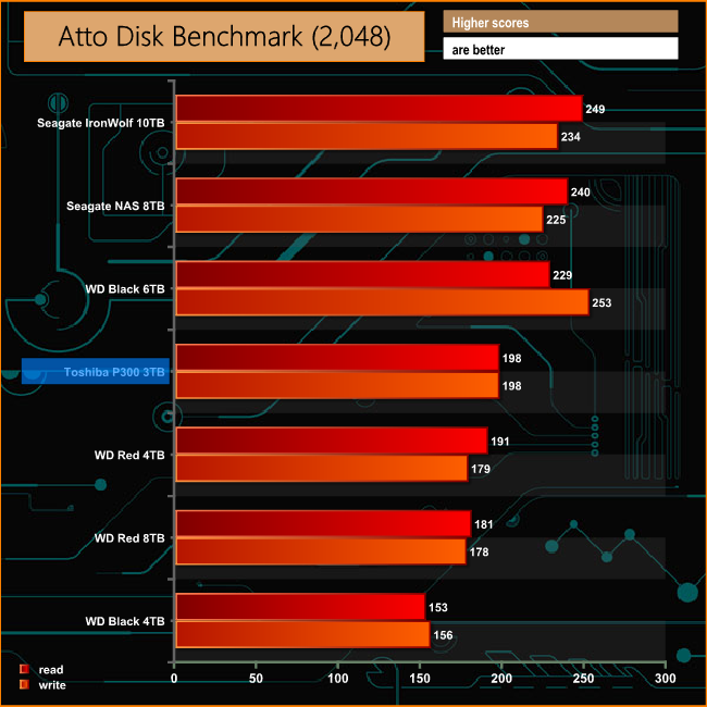 The P300's Sequential read/write performance is good enough to see off both the WD Black and Red 4TB drives as well as WD's 8TB Red model.