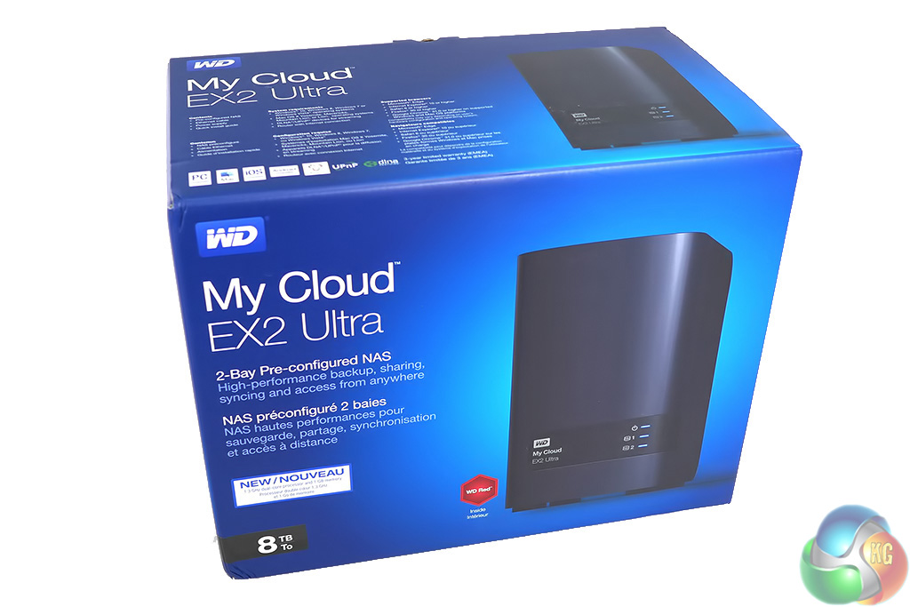 The WD My Cloud EX2 Ultra 8TB arrives in a colourful blue box, with a high resolution image on the front, showing the product in all its glory.