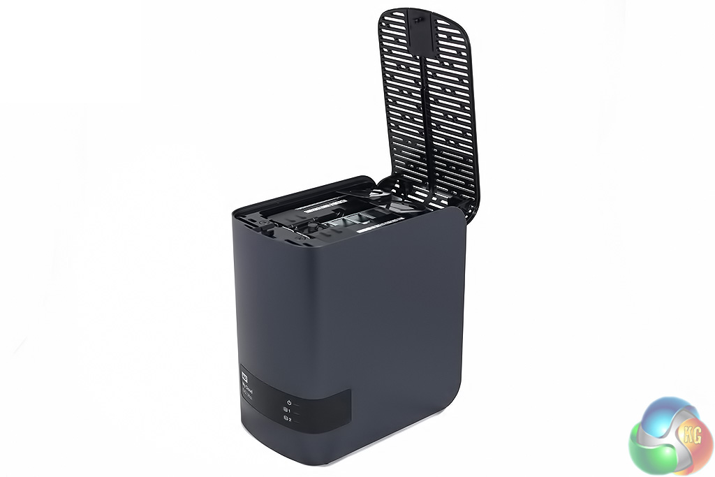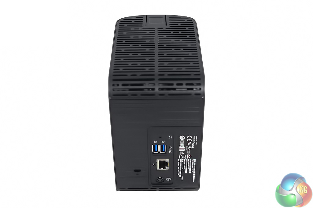 Design wise, the EX2 Ultra carries on with the familiar “WD My Book” design so it can sit unobtrusively on a shelf. This may be all well and good from an aesthetic point of view but if you want to plug in an external drive to back up data you may find yourself cursing the lack of a front USB port as the pair of USB3.0 ports that are provided (these are the only external ports) sit in the rear panel. Three blue LEDs in the front of the device show power on/off and activity status for each of the disks.