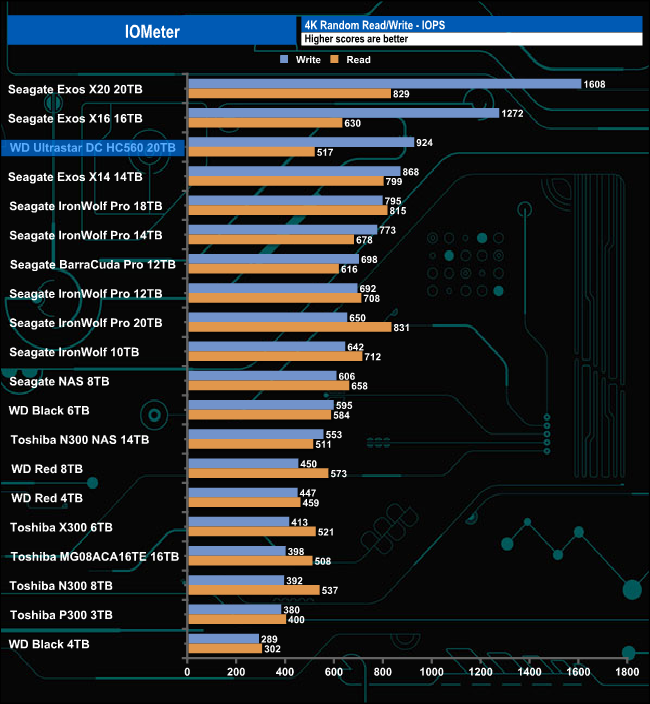 We test with both random read and write 4k tests, as shown above. There are many ways to measure the IOPS performance of a hard drive, so our results will sometimes differ from the manufacturer’s quoted ratings. We do test all drives in exactly the same way, so the results are directly comparable.