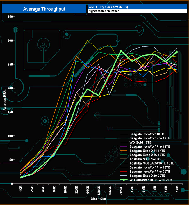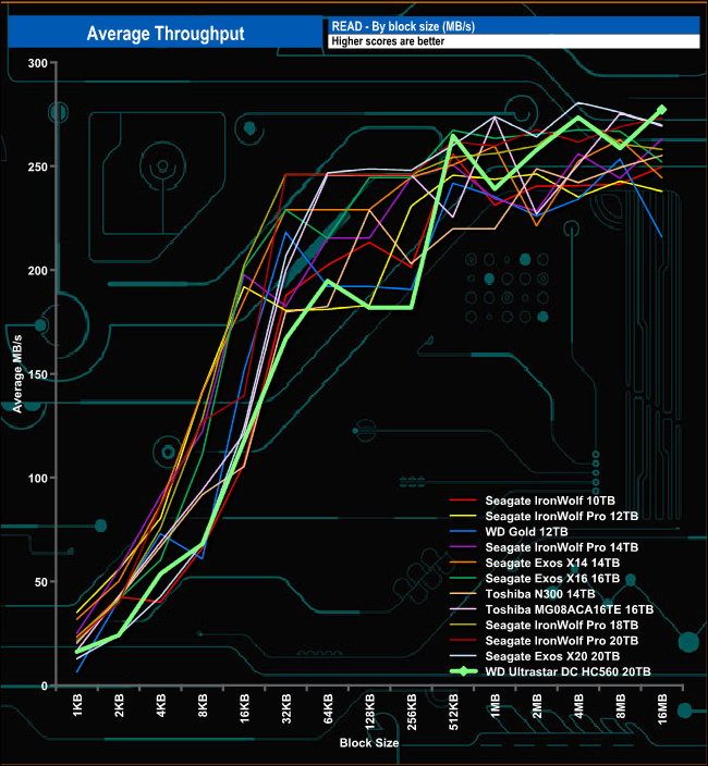With a peak read result of 277MB/s, the DC HC560 is the fastest HDD we've seen to date when it comes to read throughput.