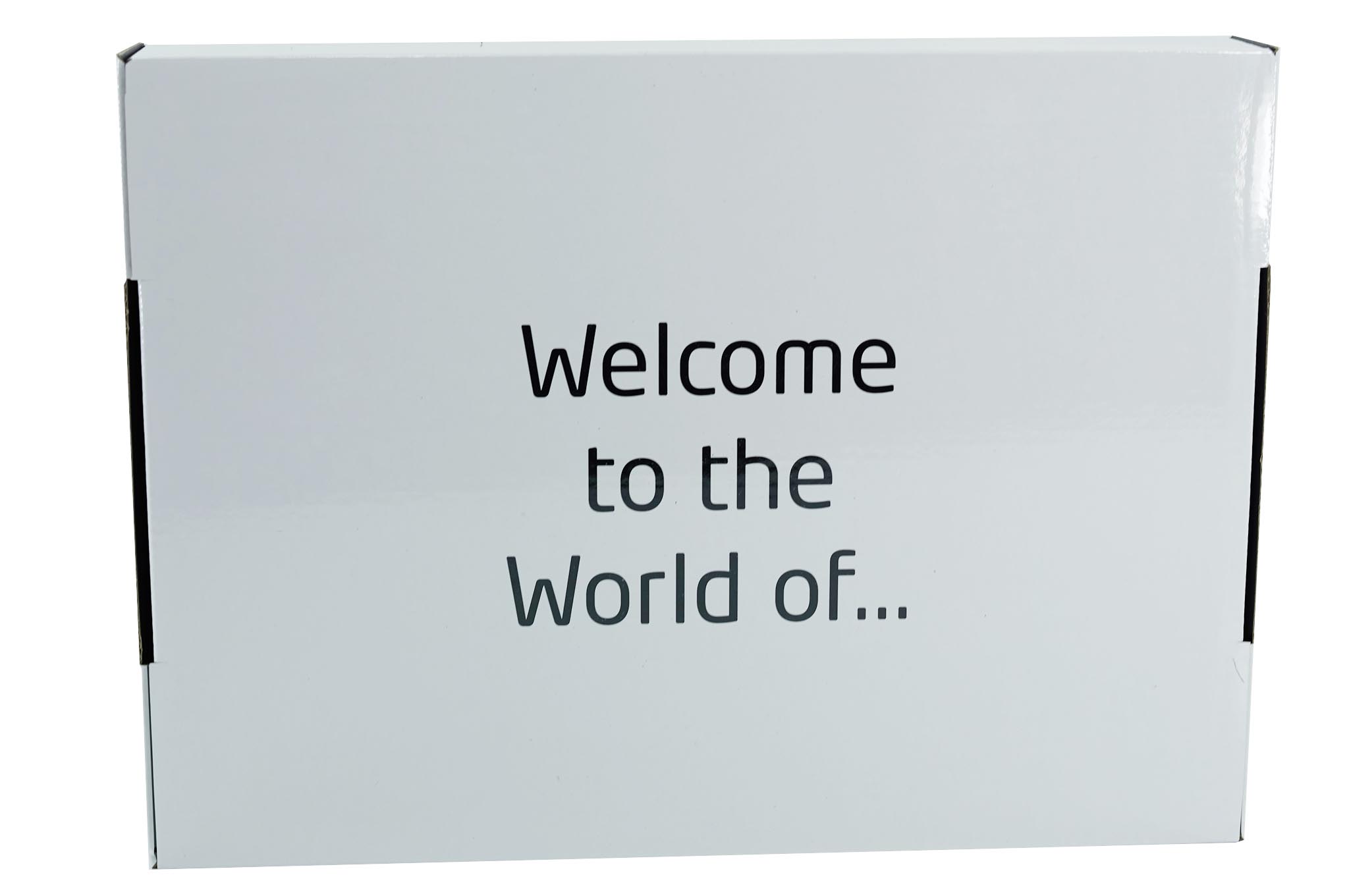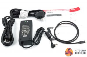 Inside the box is a Thunderbolt 3 connector, two power cables (one for Europe and the other for UK). There is a little user pamphlet explaining the warranty along with some stickers, and a universal power adapter.