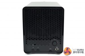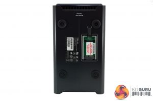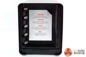 Like everything else so far – installing the 3.5 inch drives is tool-less. Simply slide the drive(s) – label side up into the bays and they lock home. To remove them, push on the grey lever at the left of each bay and pull them out again. Its a very secure system, and its hard not to be impressed so far with the ease of set up. That said, the software side of a DAS or NAS can make or break it, so we reserve final judgement until later.