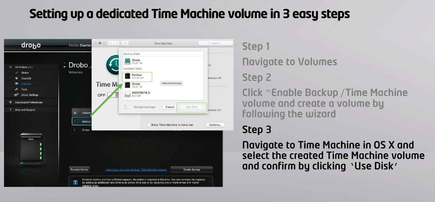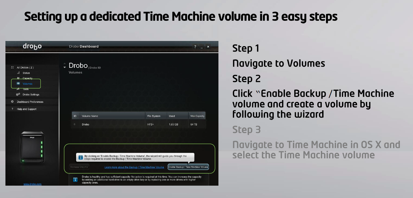 You can also set up a Time Machine volume by creating a volume and following the wizard. I personally prefer to use Carbon Copy Cloner but you can see by the images above just how straightforward this is.