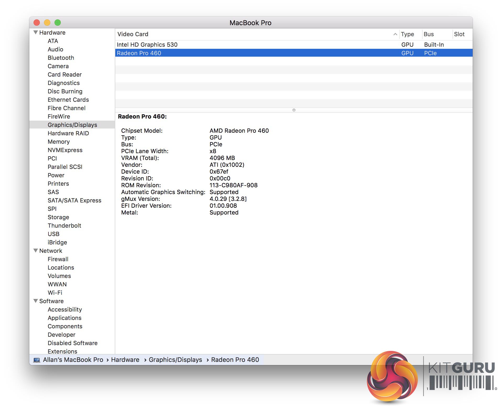 Above, the highest specification 2016 Apple MacBook Pro (Space Grey) sold by Apple, featuring an Intel Core i7 6920HQ processor, 16GB of Ram, and a 2TB PCIe Solid State drive. It also features upgraded AMD Radeon Pro 460 discrete graphics.
