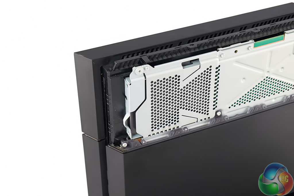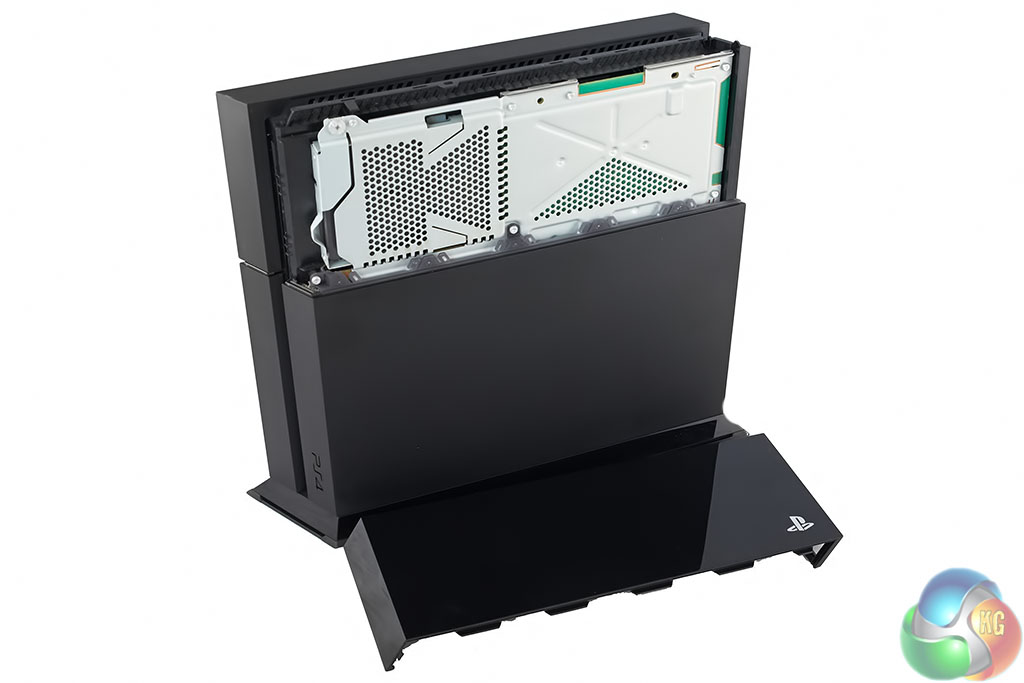 Sony have tried to ensure that the Playstation 4 is easy to work with. You don't even need to release a screw to open the main drive bay. Turn the console off properly and disconnect all the cables. Just pull up on the black plastic cover and it slips off (see image above).