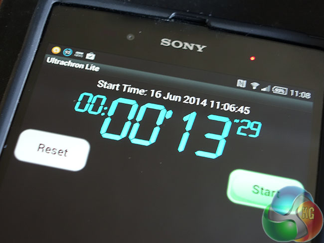 To measure the times in this article we use Ultrachron Lite running on a Sony Xperia Z Ultra smartphone. Figures were rounded up or down to the tenth digit.