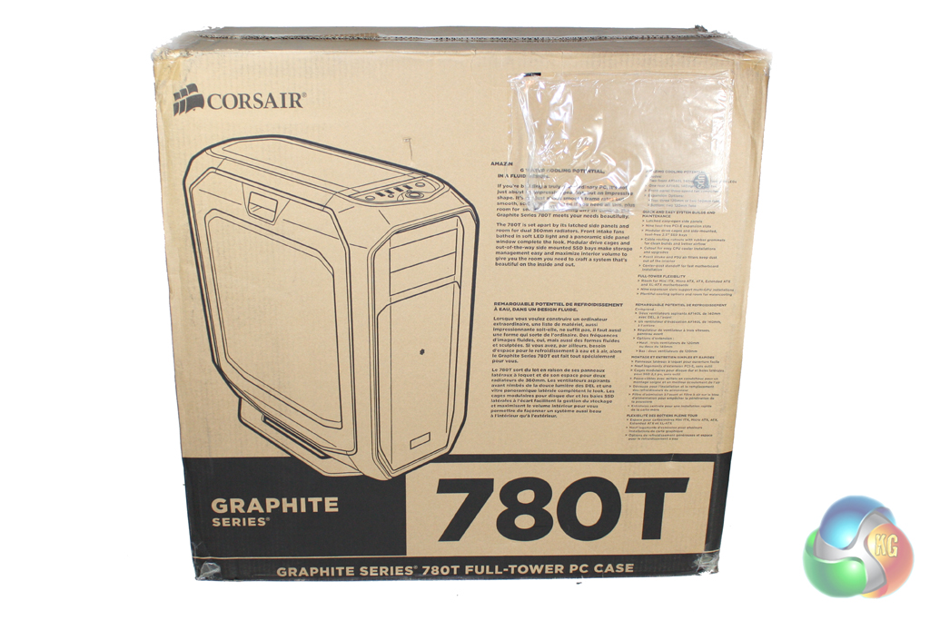 The Corsair Graphite 780T is supplied in a substantial cardboard box which is decorated in a plain black livery. The front of the box features a large image of the case within.