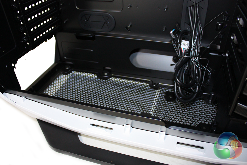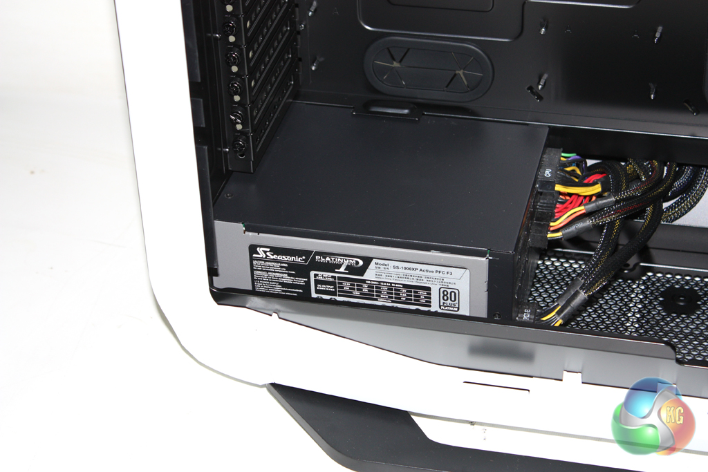 There is a large amount of room for long power supplies in the base of the chassis. We had no problem fitting our Seasonic Platinum 1000W into the case.