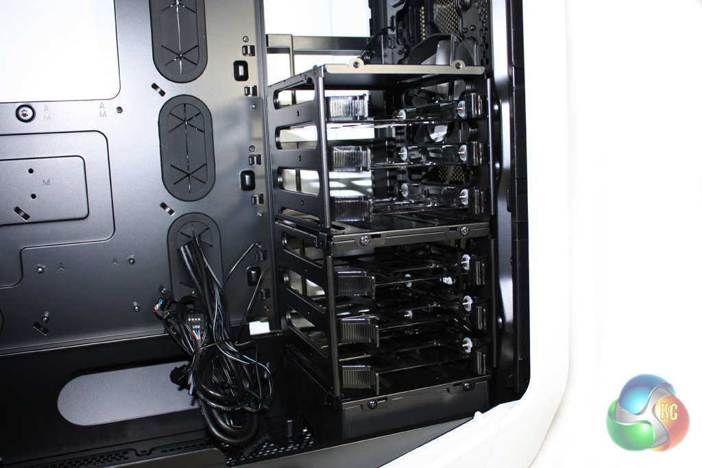 Corsair has cut a vast array of cable routing holes into the motherboard tray which make it very easy to achieve a tidy build. There is also a generous amount of room behind the motherboard tray for cable routing.