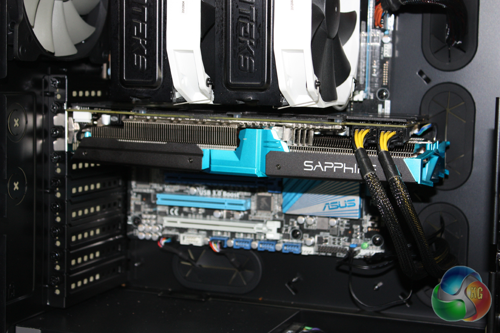 There is plenty of room in the case for all graphics card that are currently on sale. We installed two models into the system to ensure compatibility, the Asus RoG GeForce GTX 780Ti Matrix and the Sapphire Radeon R9 290X Vapor-X.